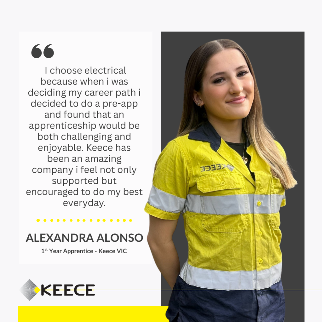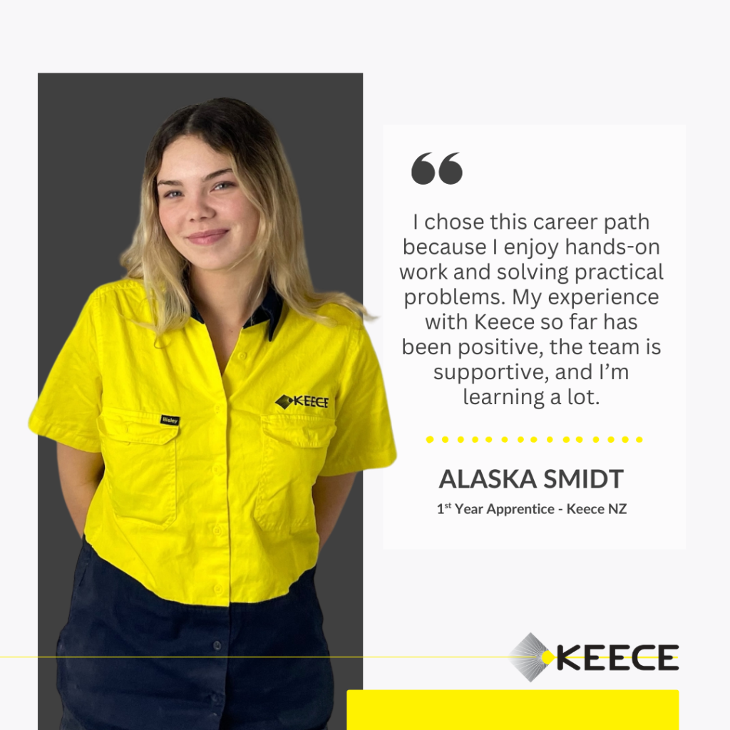 At Keece, we proudly support more women entering the electrical industry. This year, we welcome three outstanding female apprentices — Alana, Alexandra, and Alaska. Together, we call them our TRIPLE A, not only for their names but also for the attitude, ambition, and ability they bring to every project.